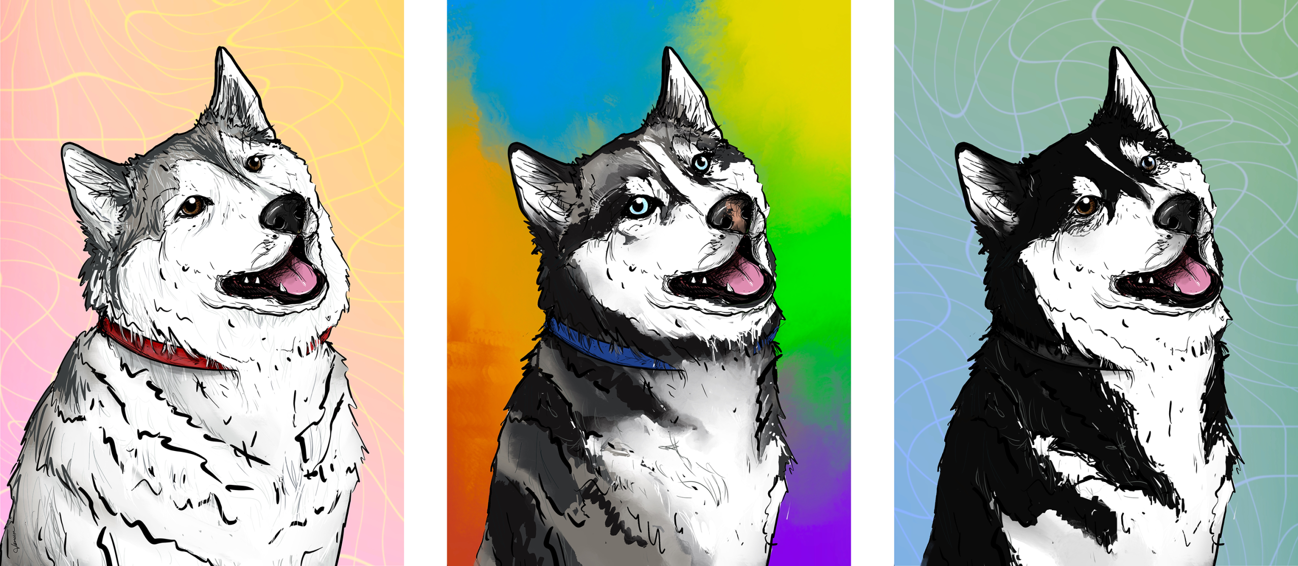 “Person-a-pet” or “personalize a pet” is a pet portrait customization service. You pick from one of the available templates, we change the colours to match your pet, and you receive a digital illustration + printed photo.